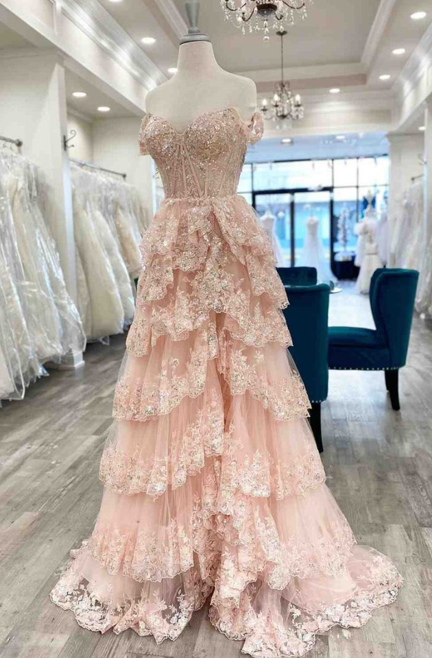 Gorgeous Off The Shoulder Long Split Corset Prom Dress with Sequin