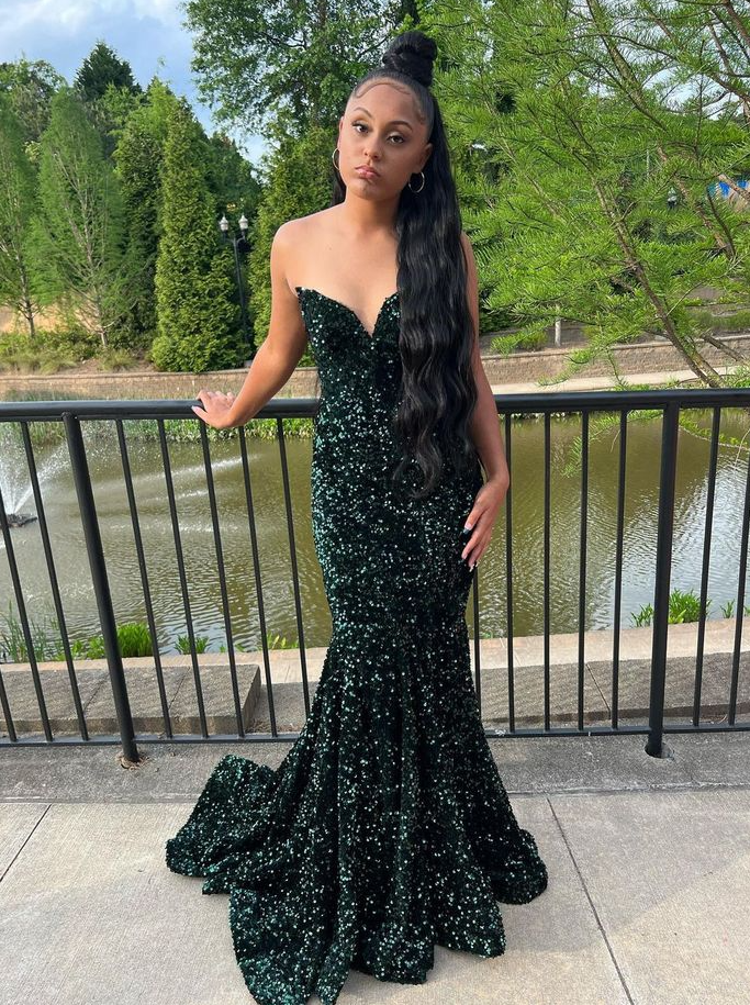 Mermaid Sparkly Dark Green Sequins Long Prom Dresses