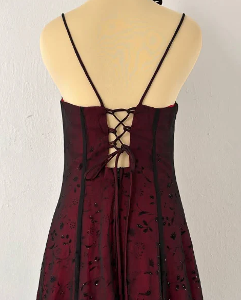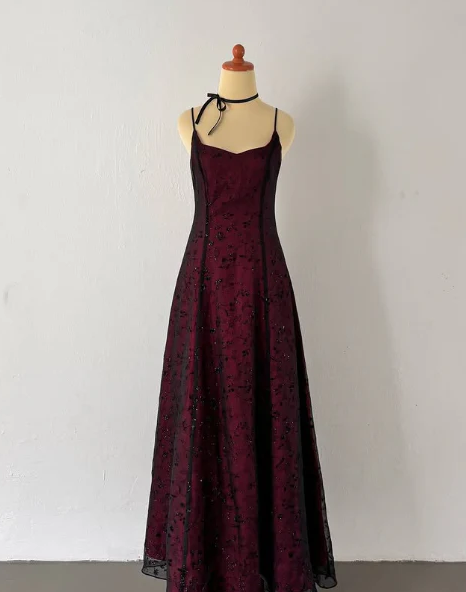 Spaghetti Straps Burgundy A Line Long Evening Dresses