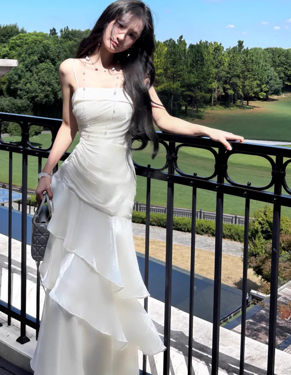 White Gentle Ruffled Layered Birthday Dress Retro Prom Dress