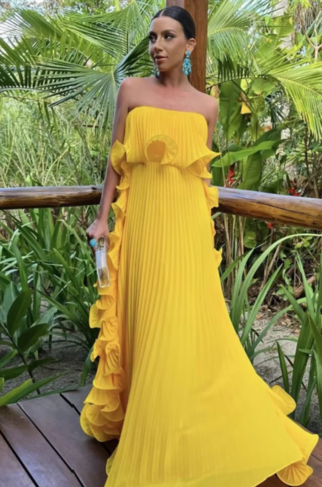 A Line Red/Yellow Ruffled Chiffon Evening Dresses