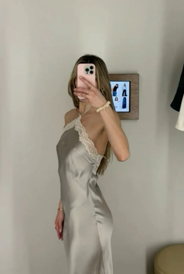 Hater Fashion Silver Long Satin Evening Dress
