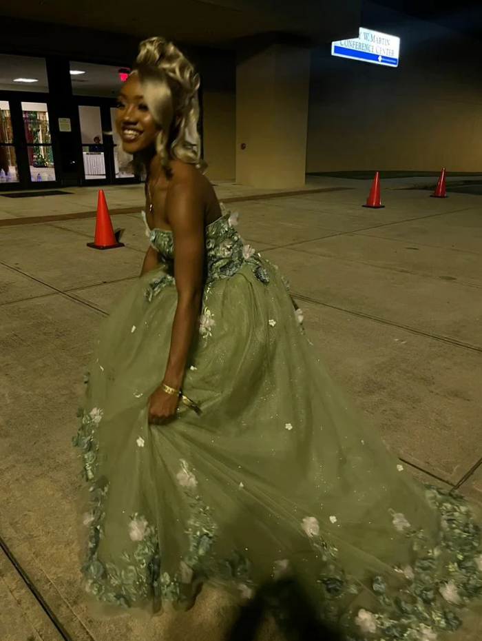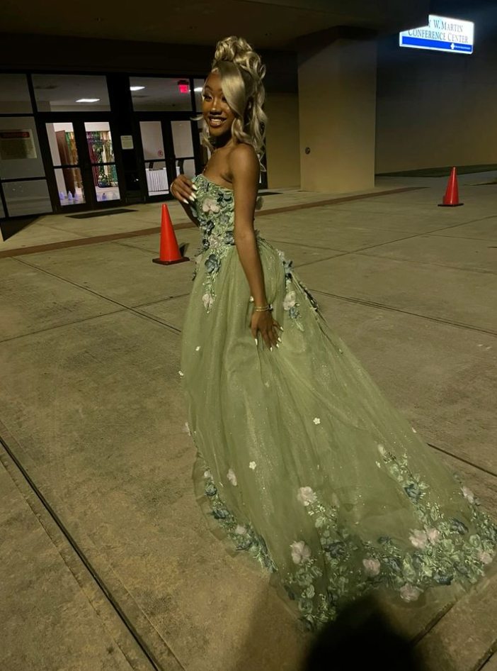 Sweetheart Green Tulle Long Prom Dress with Appliques