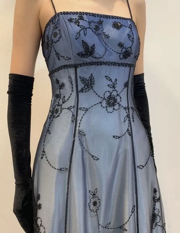 Elegant A Line Blue Delicate Beaded Long Tulle Evening Dresses