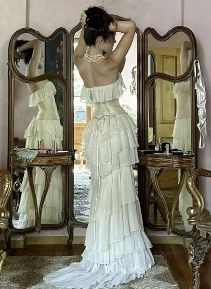Sheath Strapless Modest Chiffon Sleeveless Ivory Prom Dresses
