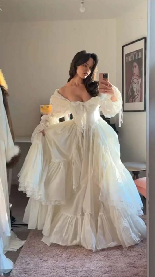 Off Shoulder A Line Long Sleeves Vintage Wedding Dresses