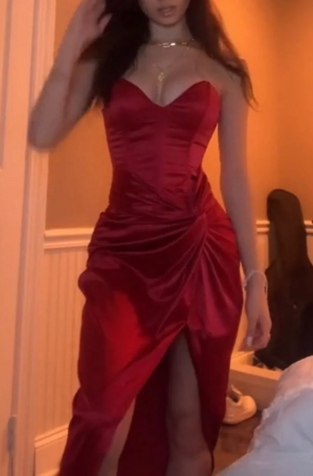 Sweetheart Burgundy Long Evening Dress With Slit