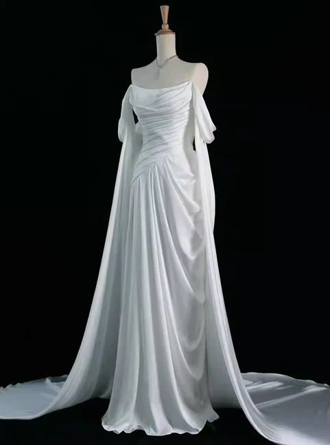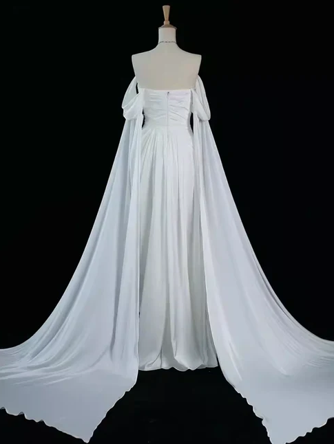 Off Shoulder White A-Line Long Formal Prom Dresses