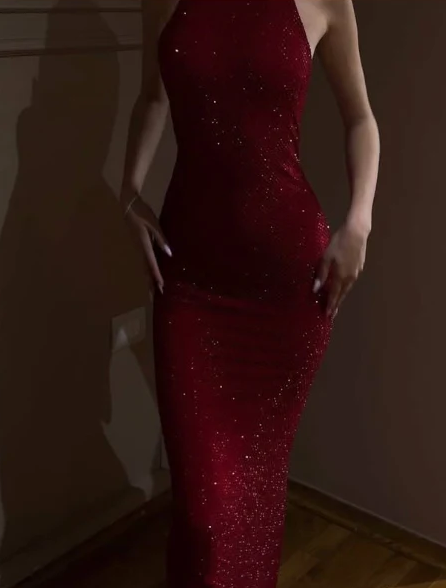 Sheath High Neckline Sequin Red Long Prom Dresses