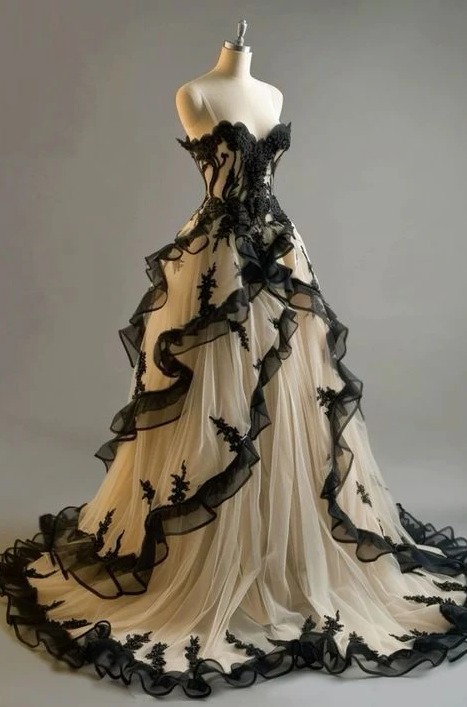 Vintage Ball Gown Sweetheart Black Tulle Ruffles Evening Dresses