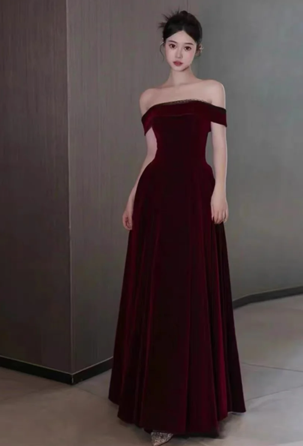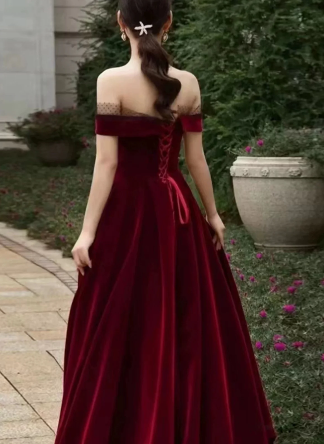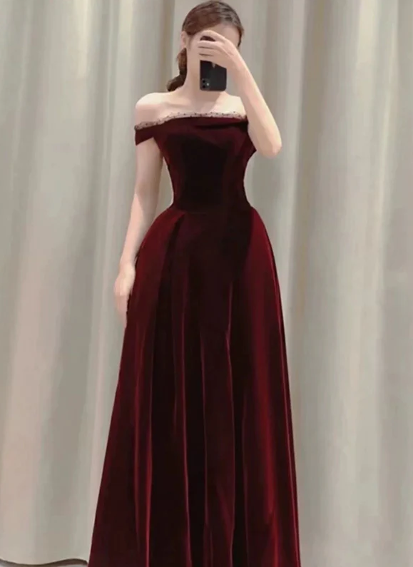 Elegant Off The Shoulder Burgundy Velvet Prom Dresses