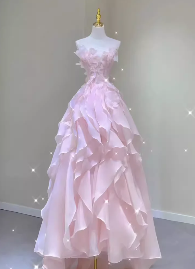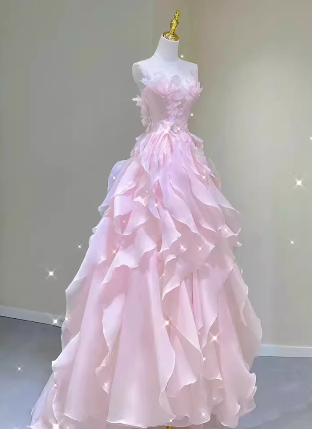 A Line Sleeveless Pink Long Floral Prom Dresses