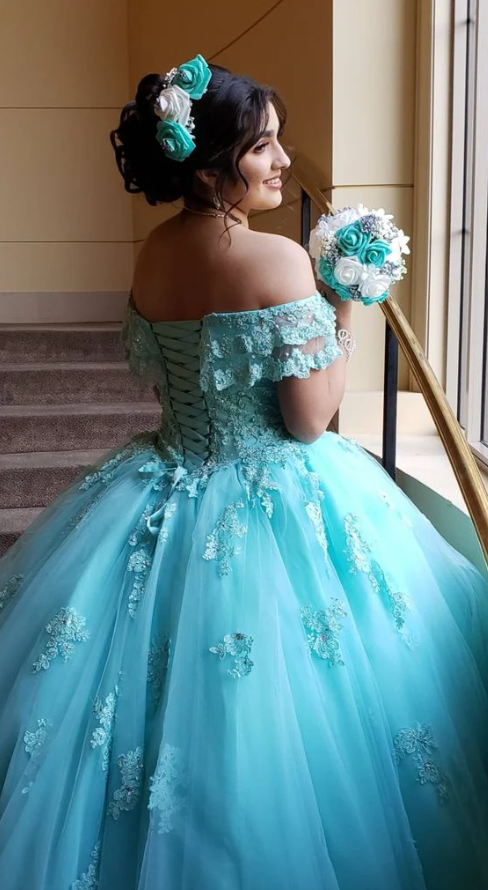 Princess Off The Shoulder Lace Tulle Ball Gown Party Dresses