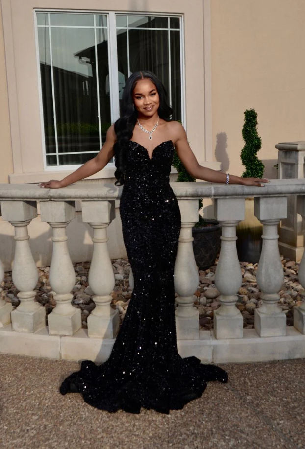 Glitter Mermaid Black Sequin Prom Dress Long Evening Gowns