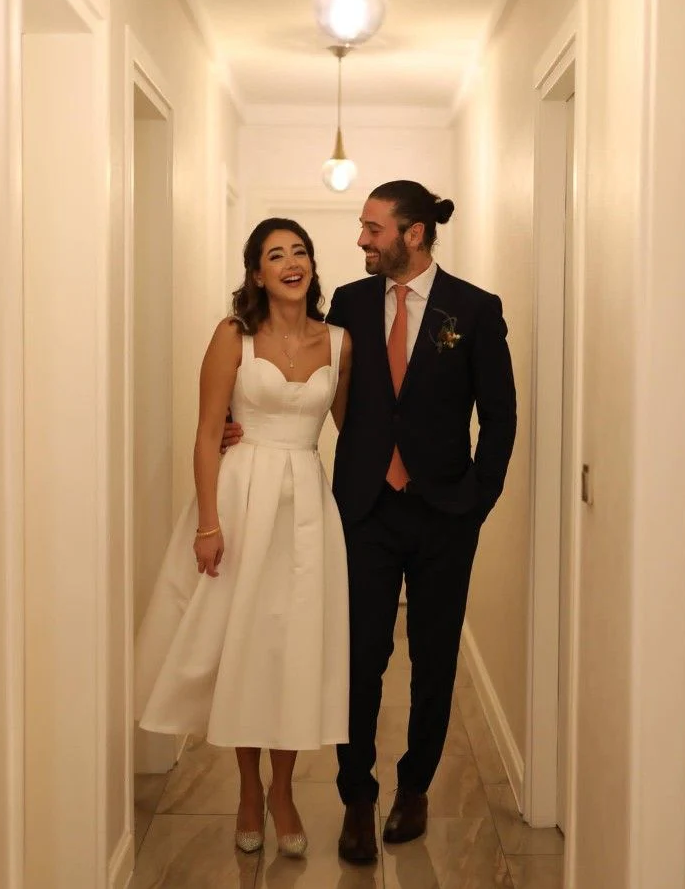 Simple A-line Ivory Satin Tea Length Prom Dresses
