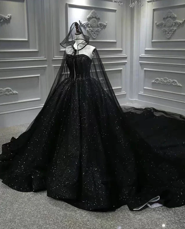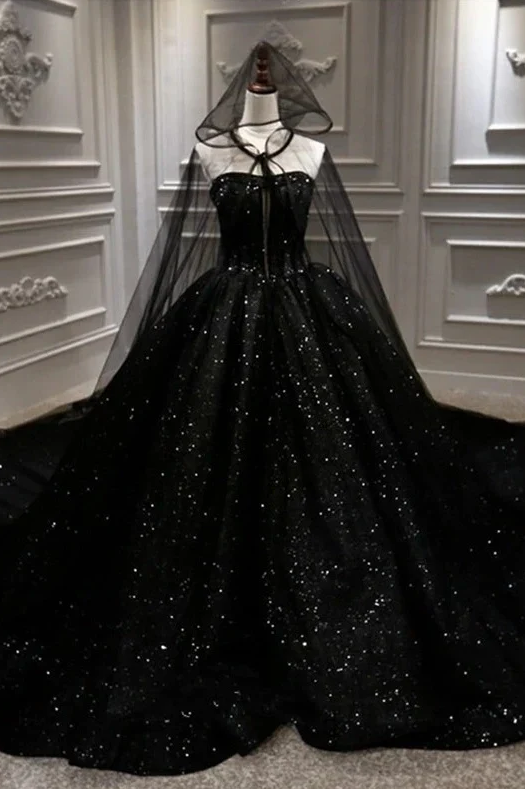 Mermaid Shiny Strapless Black Sequin Princess Prom Dresses