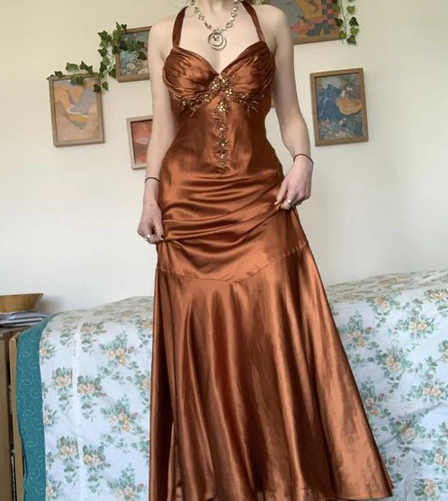 Vintage Halter V Neck Mermaid 90s Prom Dress With Beaded Appliques
