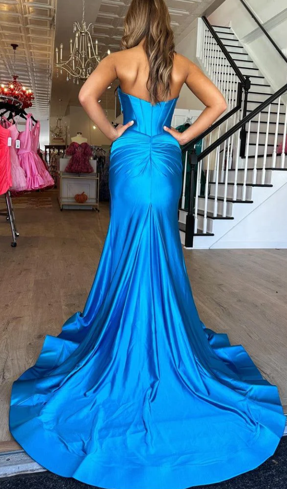 Sweetheart Mermaid Blue Long Prom Dresses with Keyhole