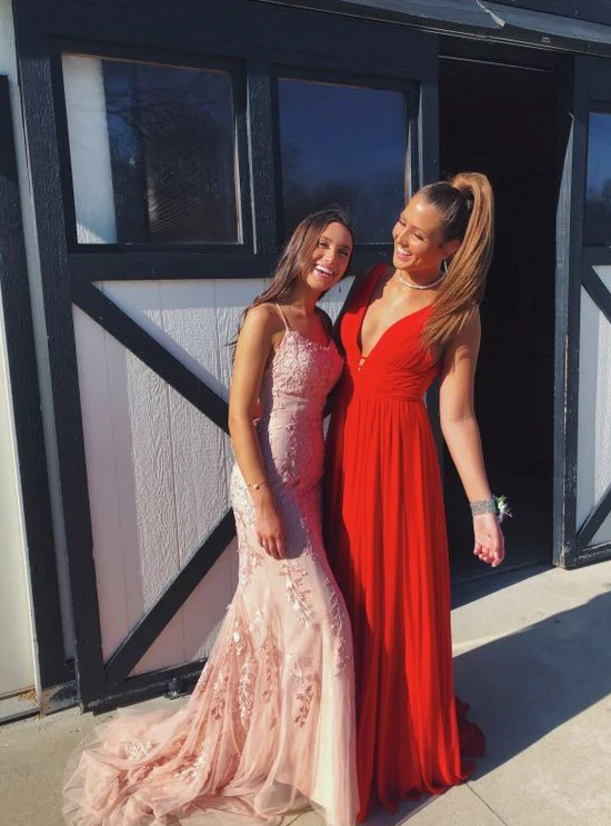 Mermaid Pink Backless Lace Prom Dresses, Graduation Dresses