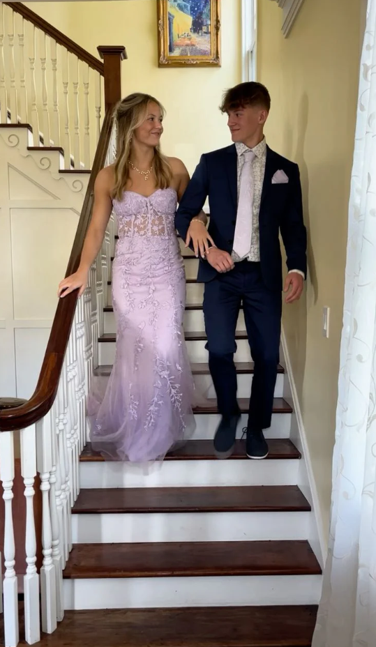 Off The Shoulder A Line Purple Tulle Prom Dresses