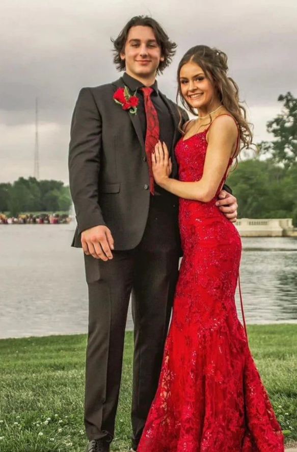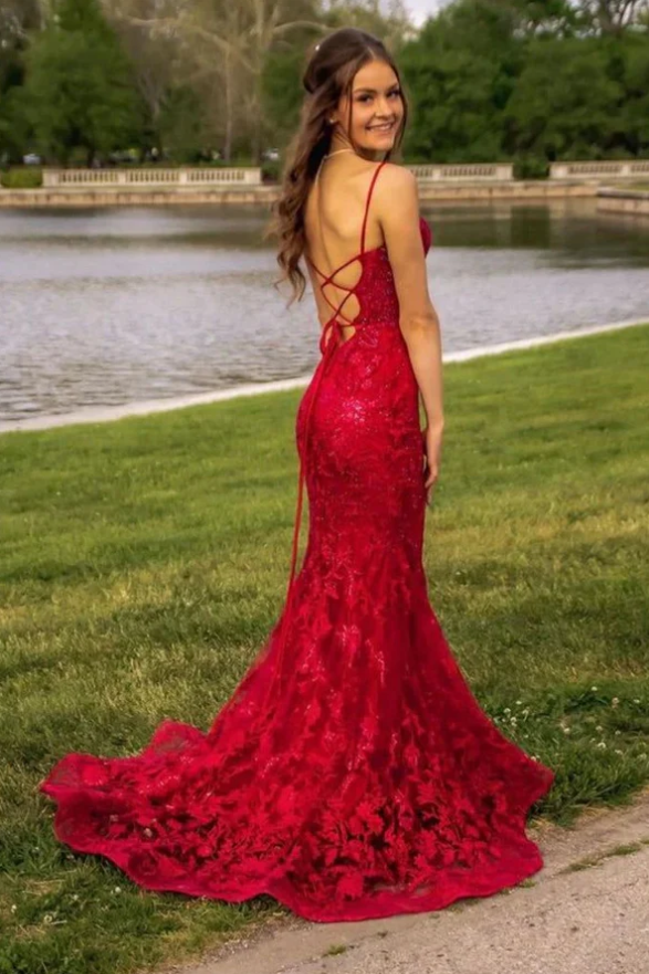 Elegant Mermaid Lace-up Back Red Prom Dresses