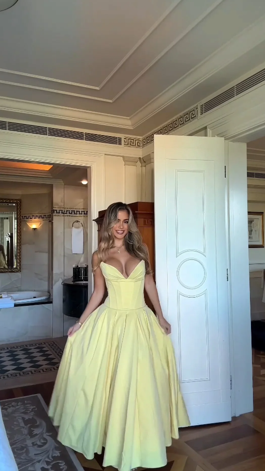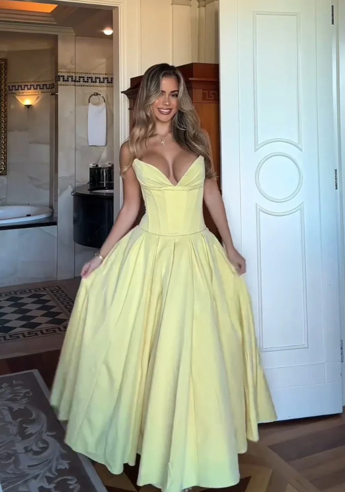 Elegant Yellow Satin A Line Prom Dresses