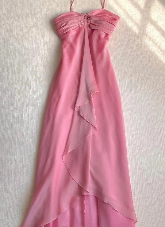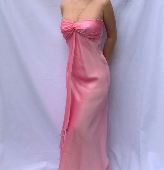 Strapless Sweet Pink Chiffon Long Prom Dress Formal Party Dress
