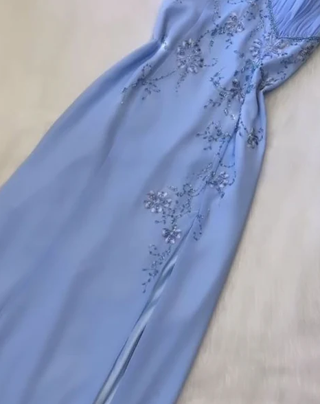 Chic Halter A Line Blue Long Prom Dress With Beading