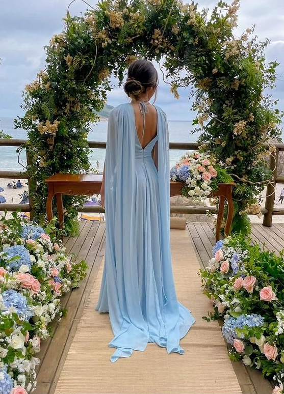 Charming A Line V Neck Light Blue Long Prom Dress