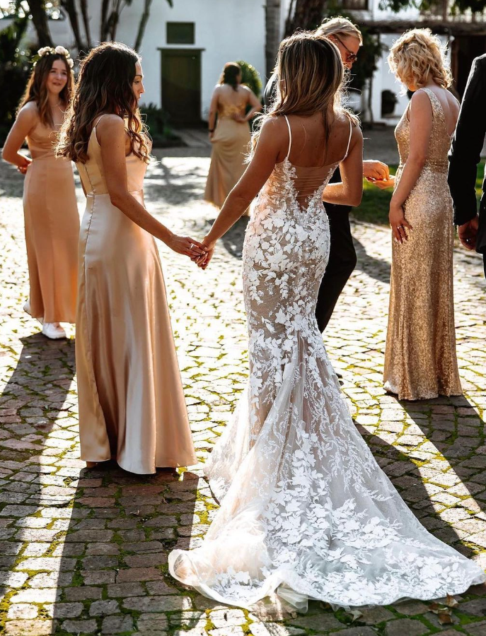 Luxurious V Neck Lace Mermaid Wedding Dresses
