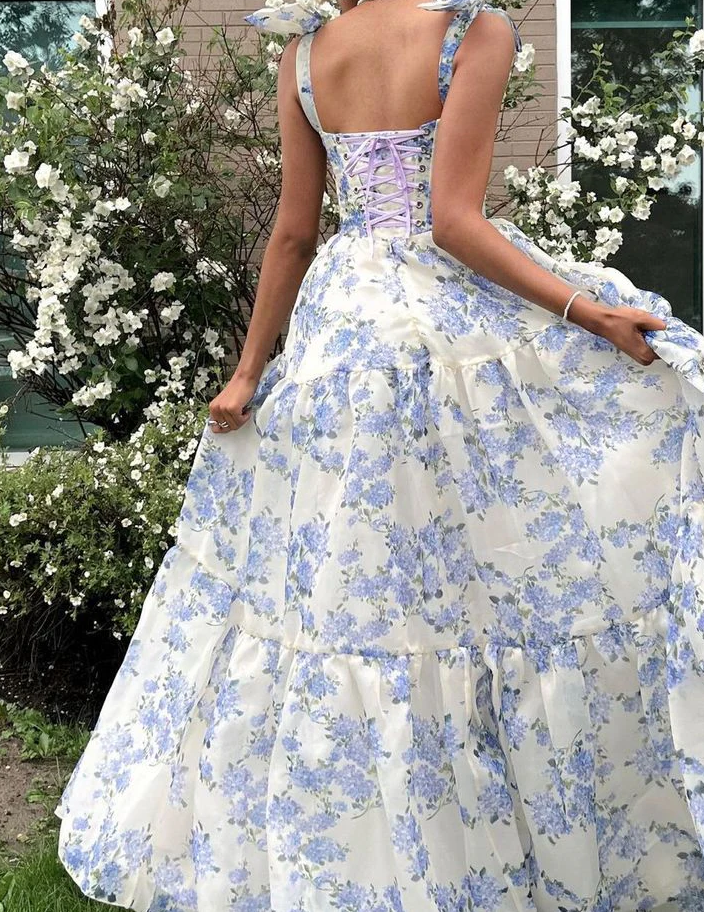 A-Line Floral Pattern Chiffon Prom Dresses