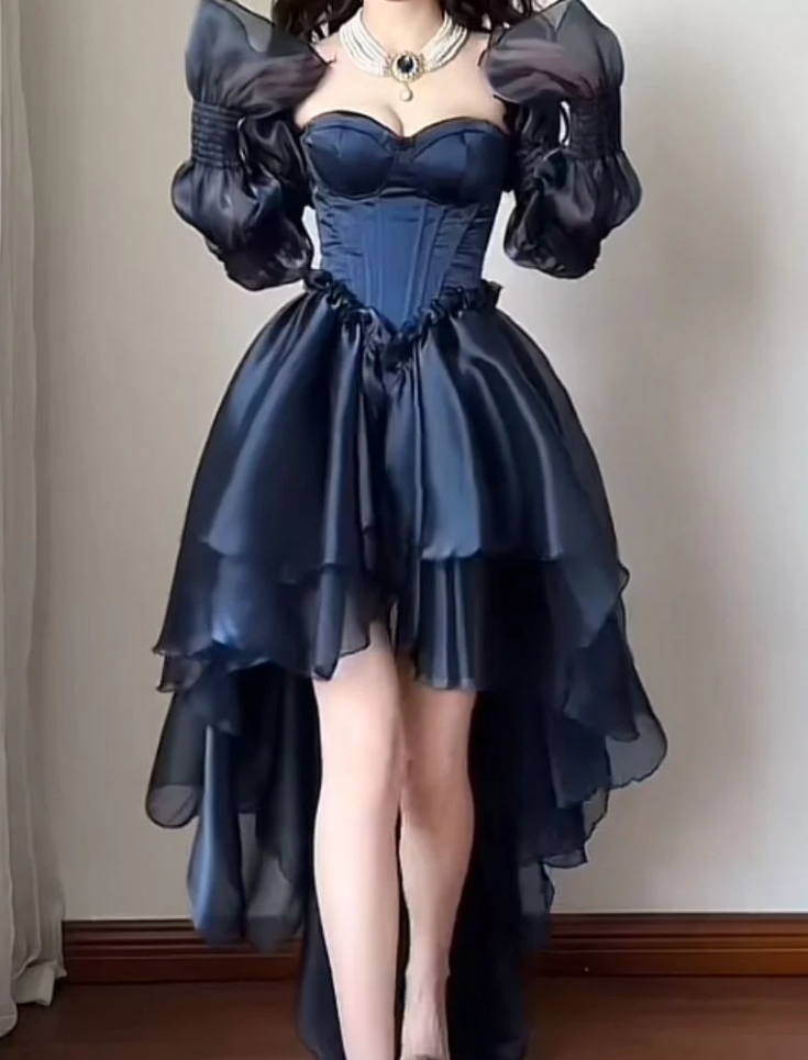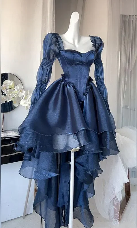 Vintage Style Off Shoulder Navy Blue High Low Party Dresses