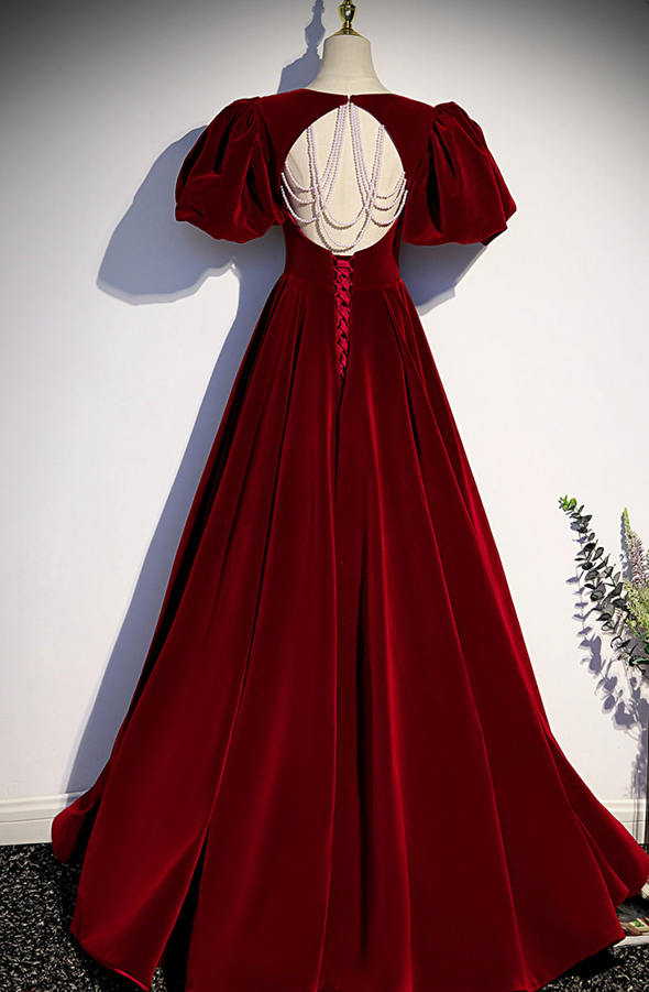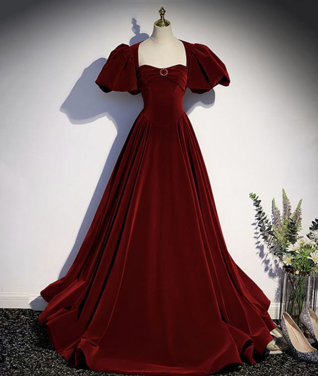 Beautiful A Line Burgundy Velvet Long Prom Dresses