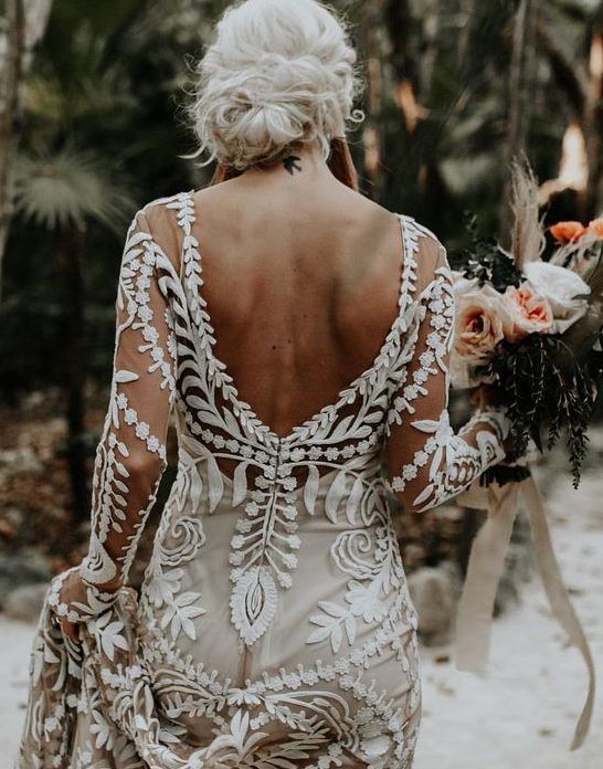 Chic Bohemian V Back Lace Wedding Dresses Bridal Gowns