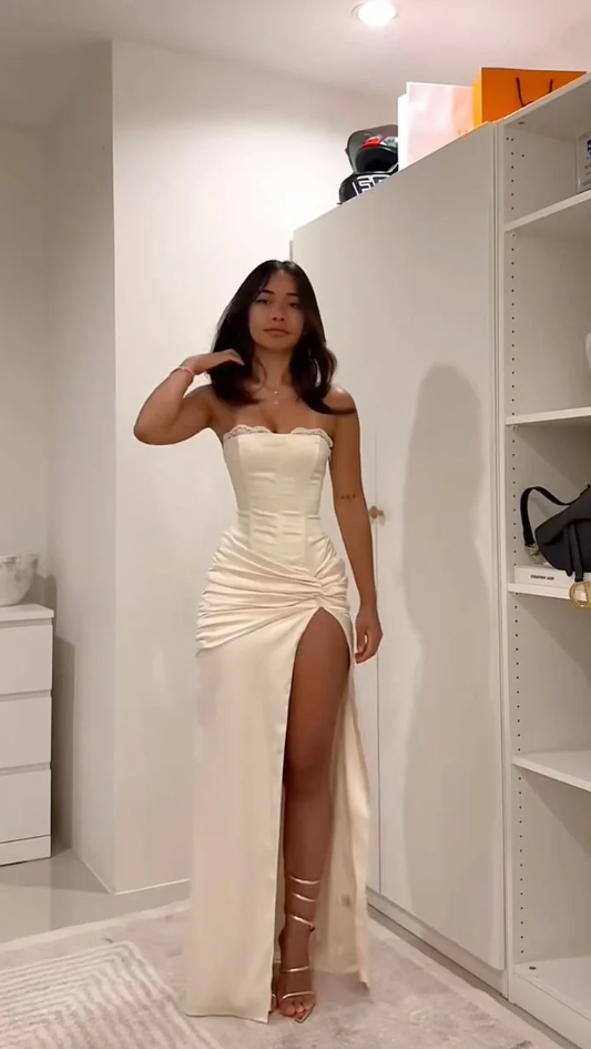 Strapless Sheath Ivory Split Long Prom Dresses