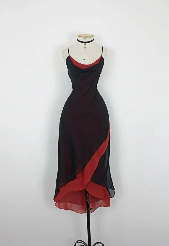 Spaghetti Straps Sheath Chiffon Tea length Party Dresses