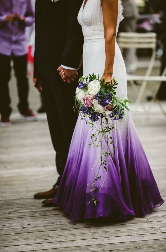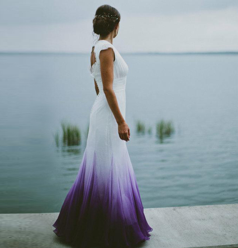 Beautiful Omber Chiffon Purple Beach Wedding Dresses Bridal Gowns