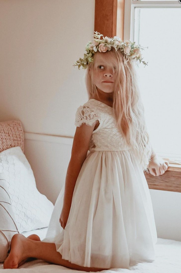 Cute Capped Sleeve Lace Back Flowers Girl Dress