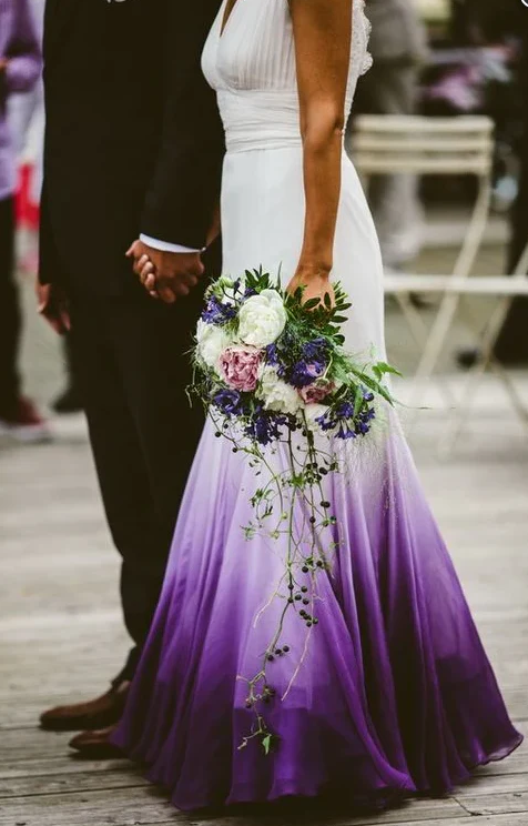 A LineV neck Ombre Formal Prom Dresses, Wedding Dresses