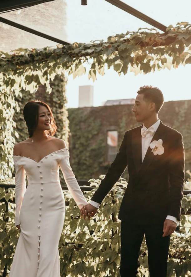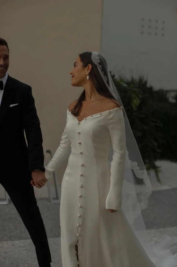 Elegant Off White Unique Long Bridal Gowns Prom Dress