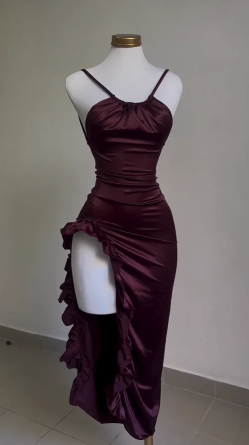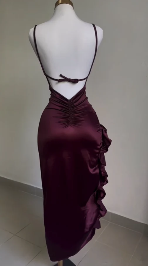Sexy Backless Ruffle Asymmetrical Midi Length Prom Dress