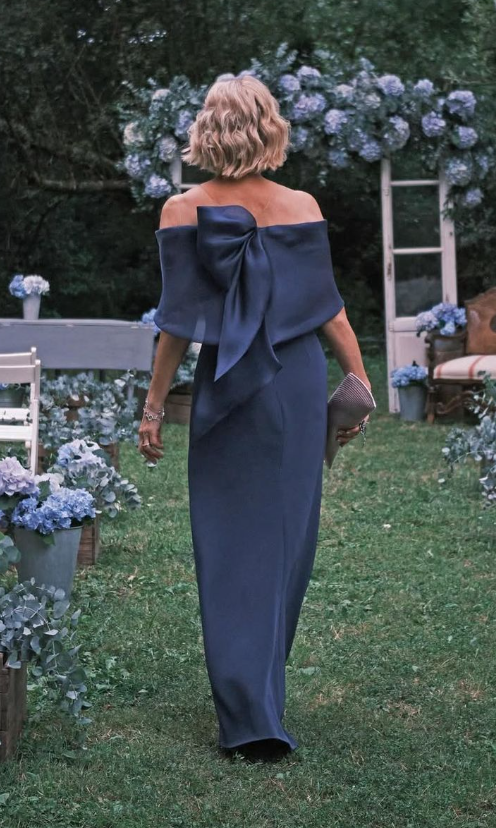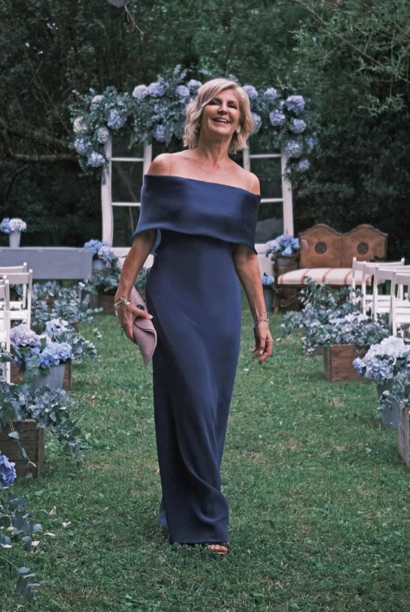 Sheath Off the Shoulder Navy Blue Mother of the Bride Dress