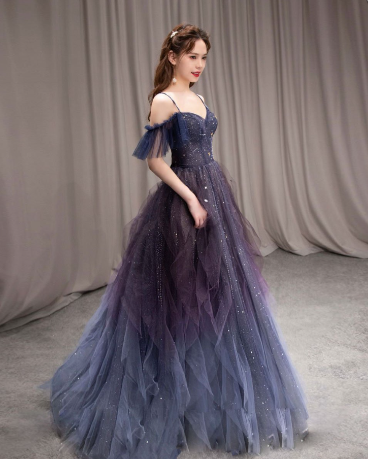 Off Shoulder Purple Sweetheart Floor Length Prom Dress