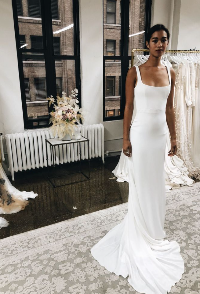 Vintage Mermaid Square Neck Satin Wedding Dresses