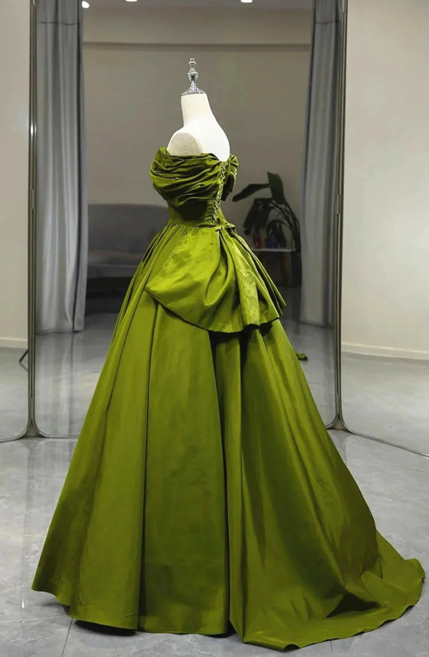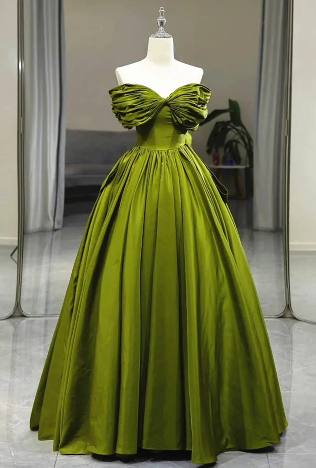Off Shoulder Green Satin Sweetheart Prom Dress