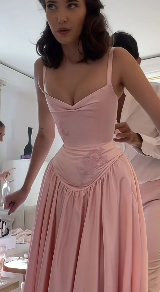 Spaghetti Straps Retro Pink A-Line Long Prom Dresses