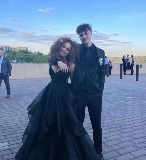 Shiny A-Line Black Straps Long Backless Prom Dresses