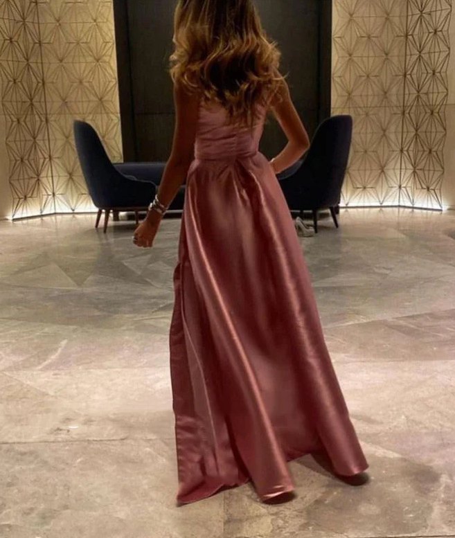 Simple One Shoulder Dusty Pink Satin Long Evening Dresses With Side Slit