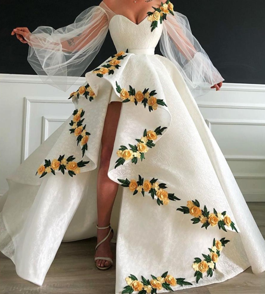 Flare sleeve ball gown embrodiery appliqué prom dress