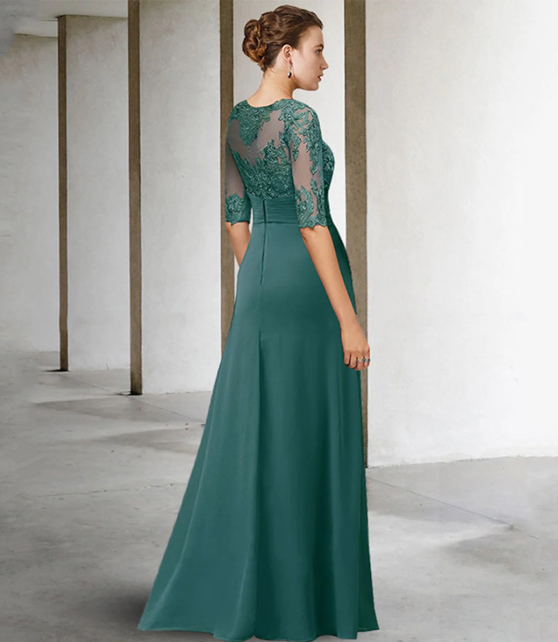 Gorgeous Beach Chiffon Mother of Bride Dresses with 3/4 Sleeve Lace